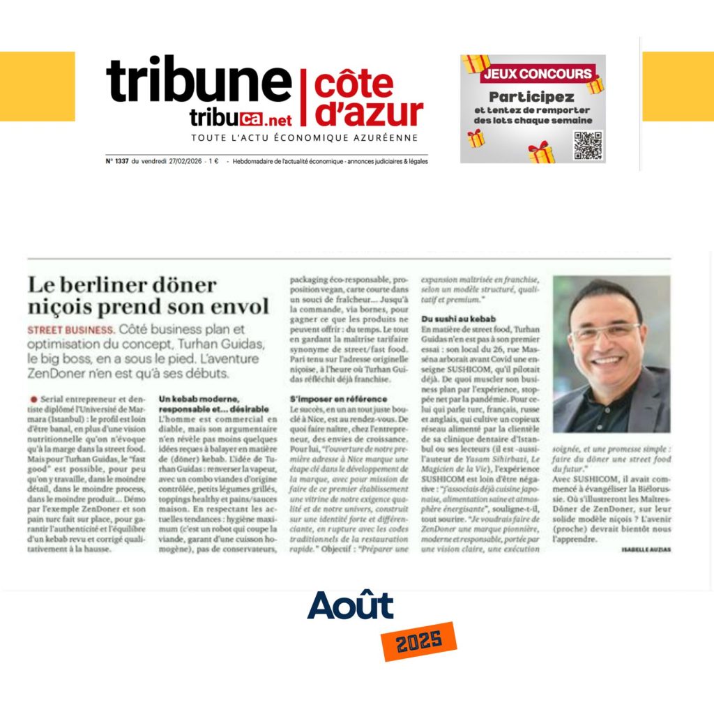 Categorieszendöner mars 11, 2026mars 11, 2026 Commentaires fermés sur Le berliner döner niçois prend son envol Le berliner döner niçois prend son envol Navigation de l’articlePrevious Bientôt un kebab << haut de gamme >> niçois sur Times Square à New York? Next Rejoindre ZENDÖNER Franchise