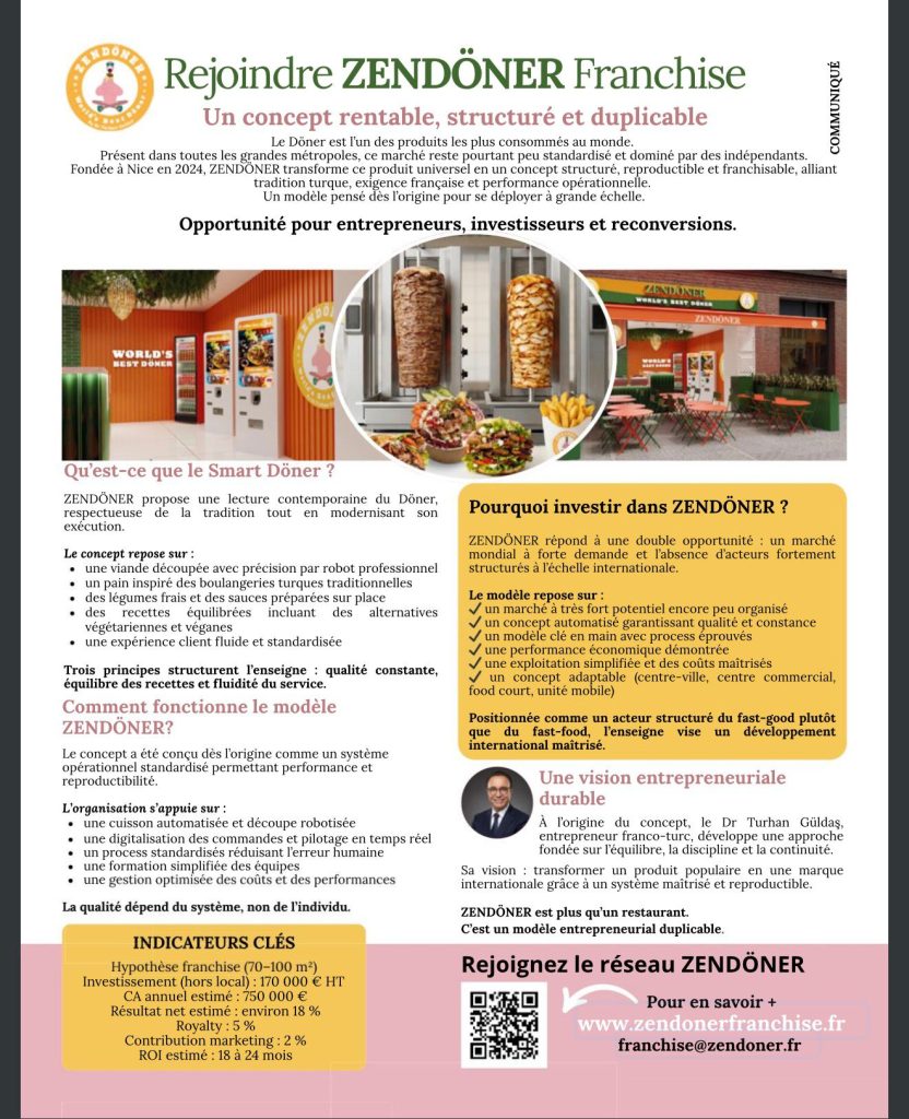 Categorieszendöner mars 14, 2026mars 14, 2026 Commentaires fermés sur Rejoindre ZENDÖNER Franchise Rejoindre ZENDÖNER Franchise Navigation de l’articlePrevious Le berliner döner niçois prend son envol Next Privé: Lancement officiel du développement international depuis janvier 2026